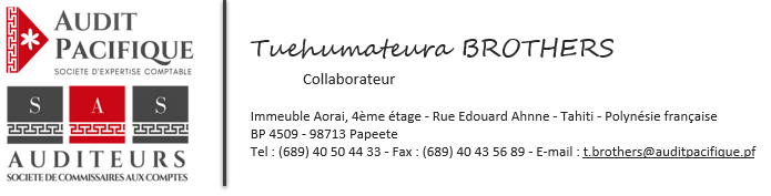 À : Tuehumateura BROTHERS <t.brothers@auditpacifique.pf>