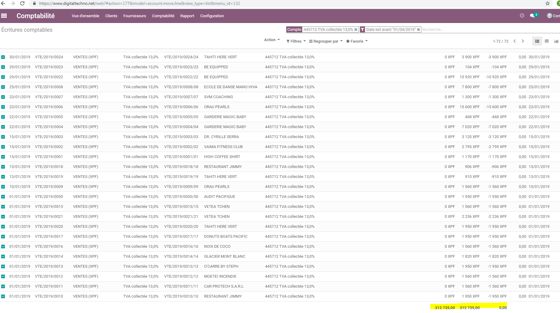 En pj une capture d’écran de l’écriture passée pour la déclaration de TVA